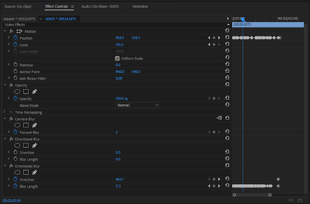 I did this by adding the motion blur effect and just moving the position of the frame in Premier rather than doing it manually as the effect is much easier to do in post and looks more like what I wanted to achieve. When adding both the movement and motion blur, the effect looks like hyper real dramatic movement that I think is emphasised well by the characters expression and the loud sounds in those shots. By spacing each effect apart every other frame and changing the amount of blur/ movement on each frame, it stops the effect from looking static.
